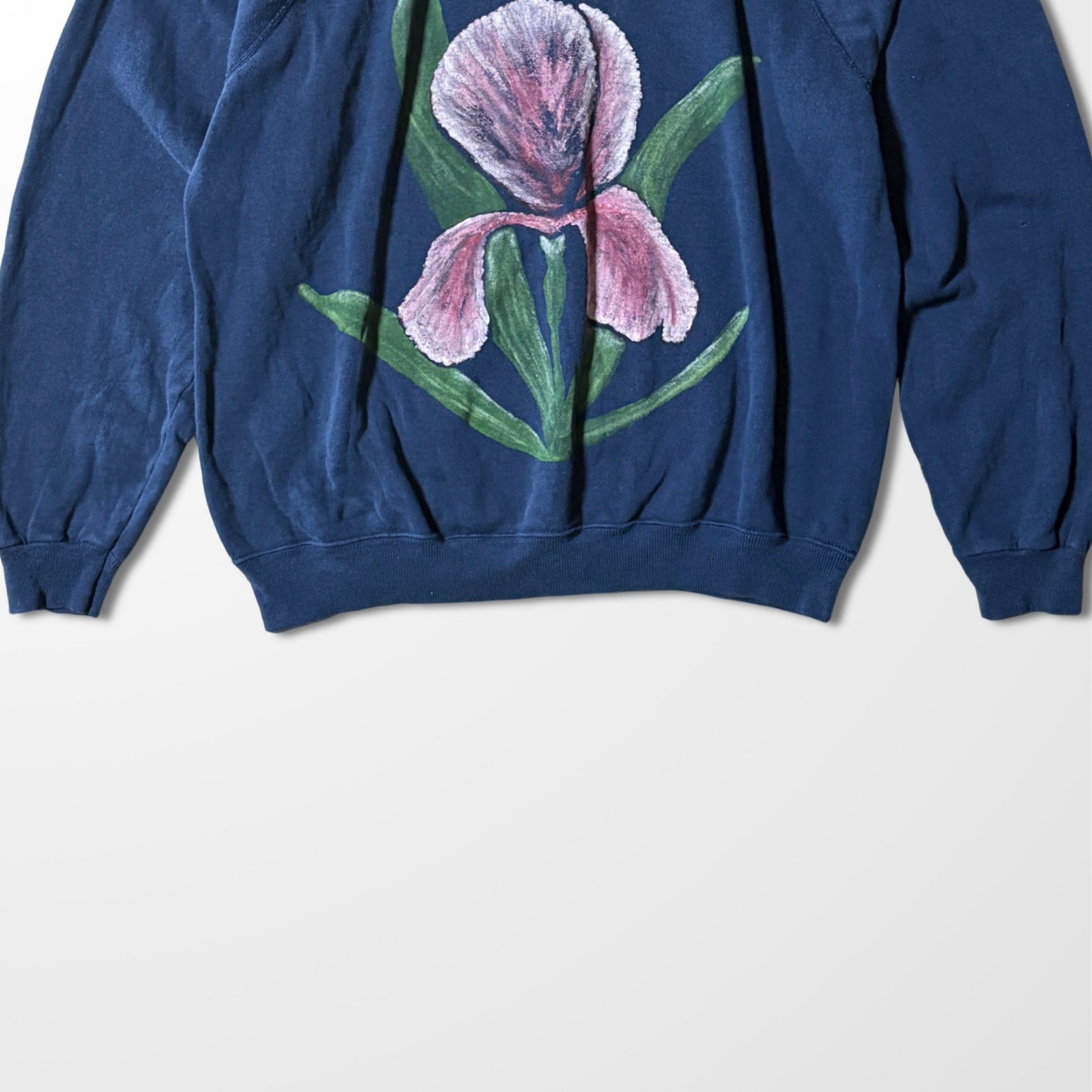 Single Iris Flower Navy Vintage Sweatshirt – Hand Painted Look