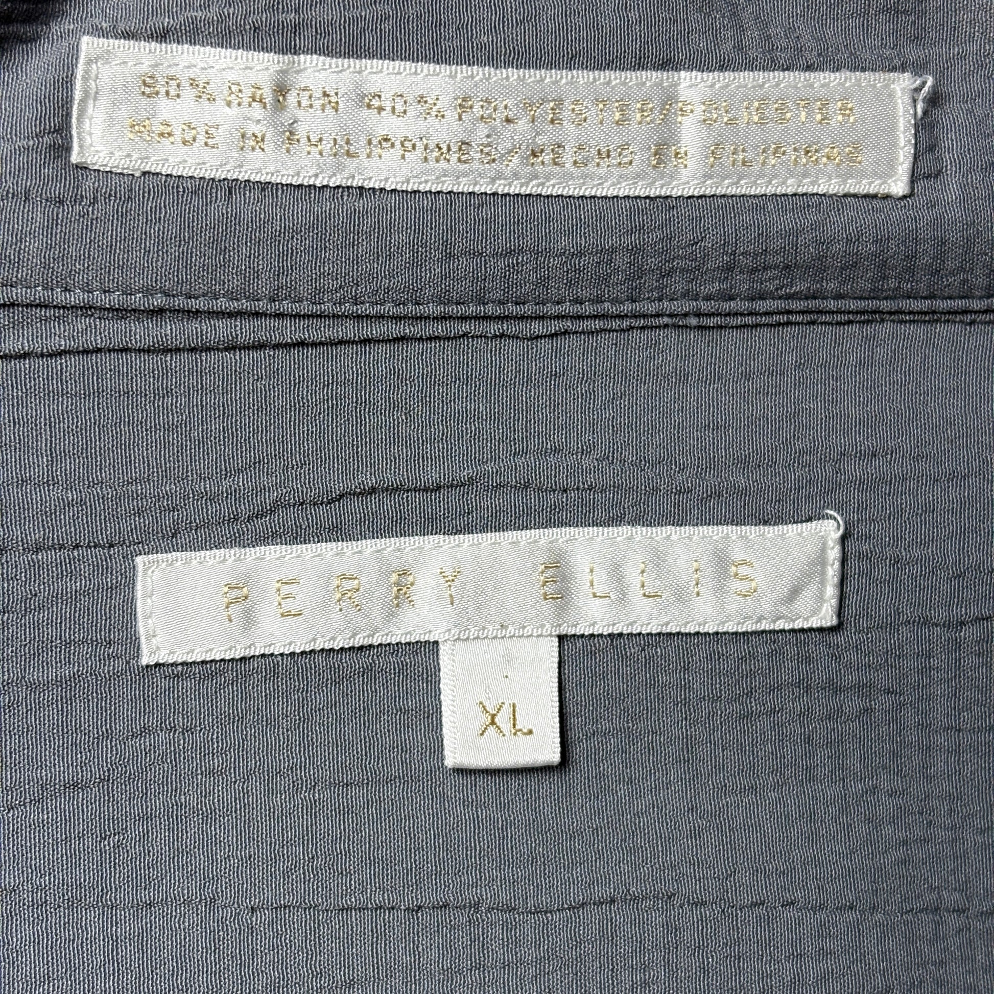 Perry Ellis Rayon Poly Open Collar Shirt XL – Gray Texture