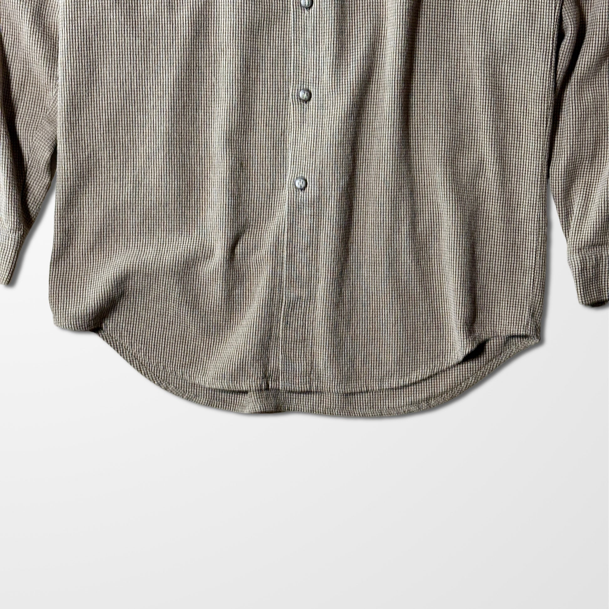 生地は軽やかで空気を含んだような質感。洗いざらしのような風合いが加わることで、古着ならではの深みが表情ににじみ出ています。シンプルにTシャツの上に羽織るだけで、静かに映える一枚。ジャケット代わりにも使えるので、季節を問わず活躍します。