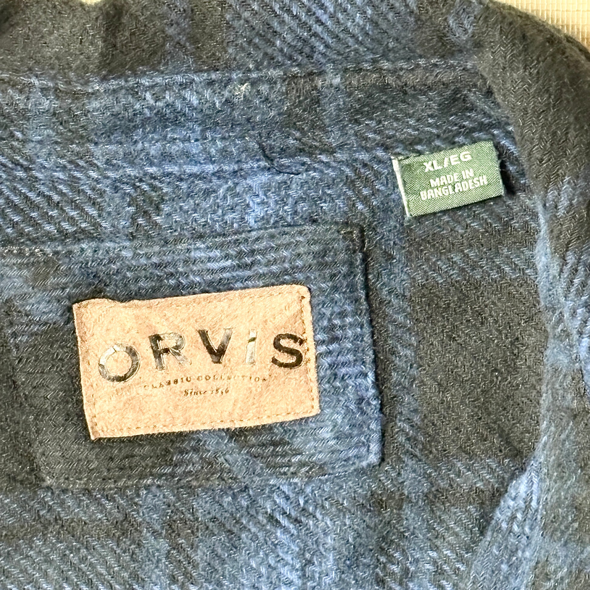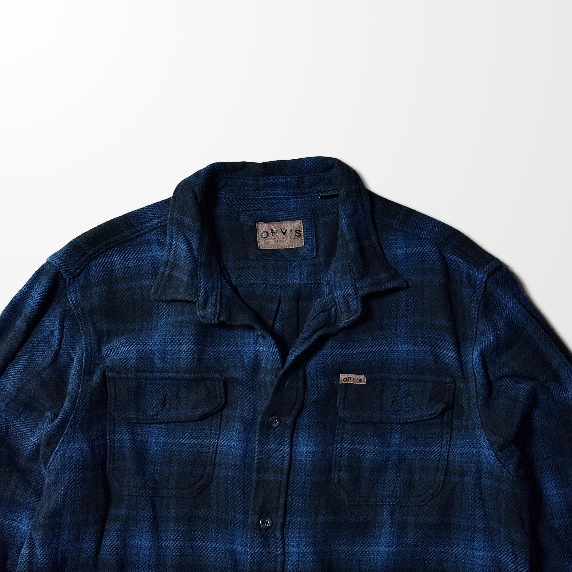 落ち着いたブルーベースのチェック柄が映える、長袖フランネルシャツ。