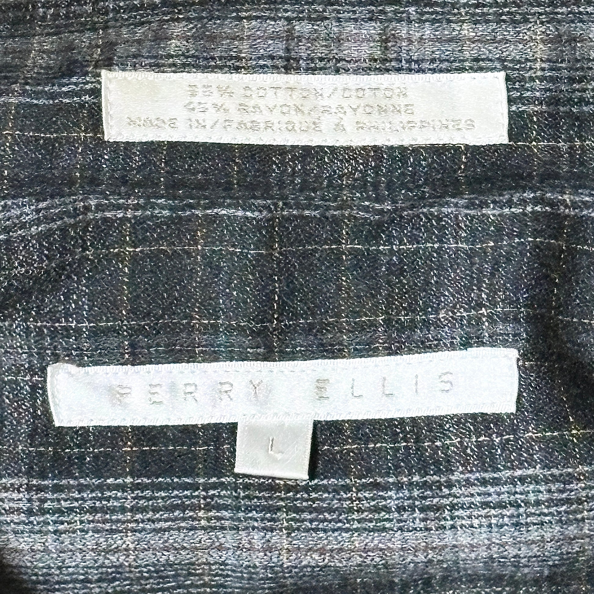 Perry Ellis Cotton Rayon Blend Black Gray Check Shirt – L