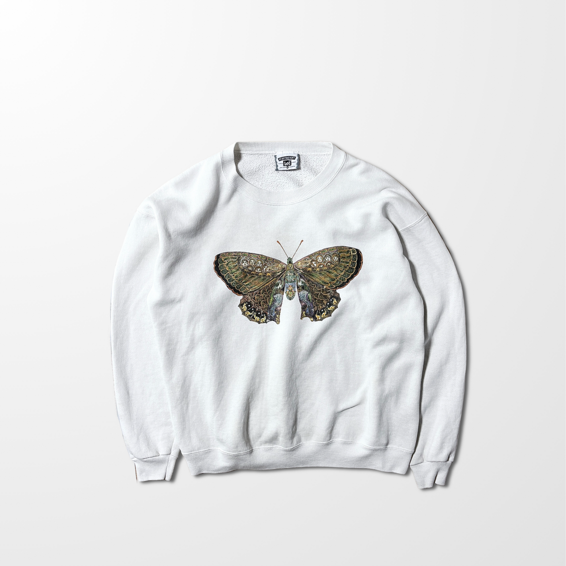 Leeのヘビーウェイトボディに、繊細な蝶のアートがプリントされたスウェット。