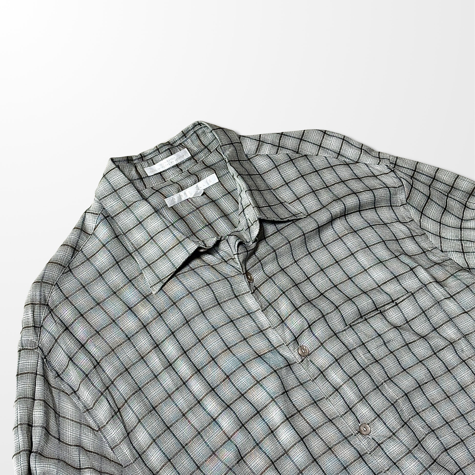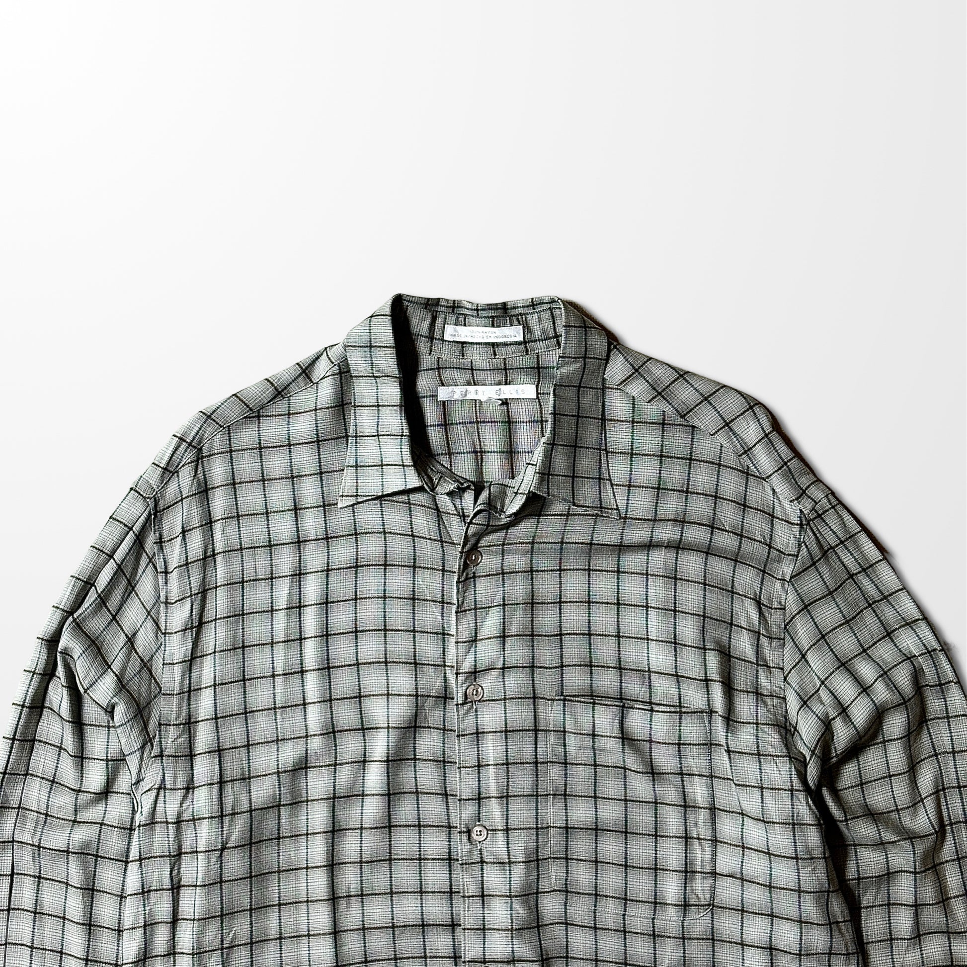 グレーを基調とした繊細なチェック柄は、光の加減で表情を変え、派手さはなくとも静かに映える存在感があります。ゆったりとしたシルエットながらも野暮ったさはなく、肩の力を抜いたリラックス感と品の良さを両立。