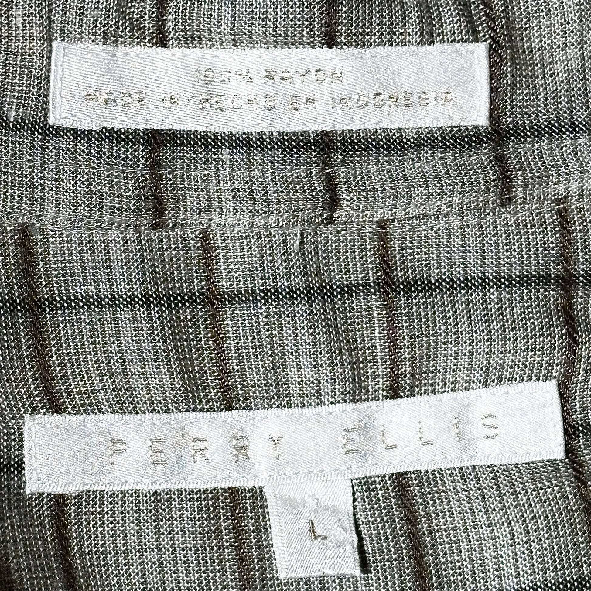 Perry Ellis 100% Rayon Check Shirt – Brown Beige, XL