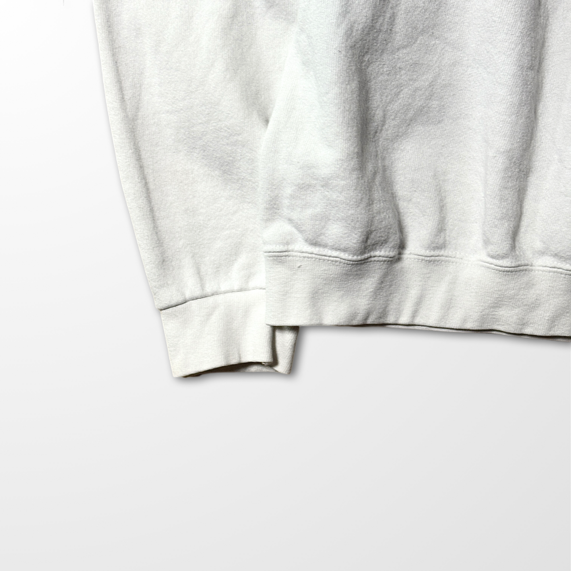 90/10(コットン×ポリエステル)の程よい肉厚感があり、空気を含むような柔らかい裏起毛が特徴。古着らしいドライなタッチながら、肌に馴染むしっとりとした質感が魅力です。