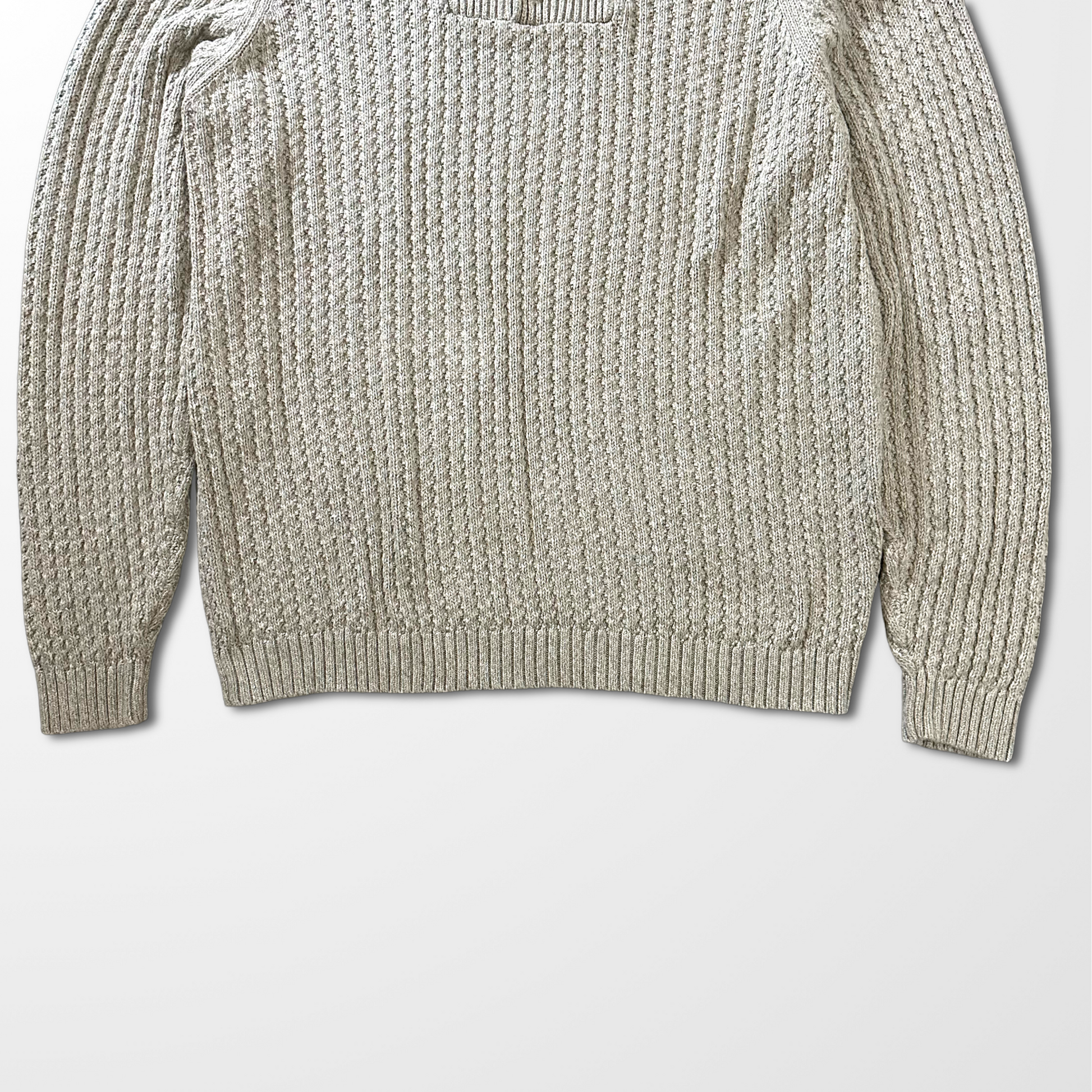 Cotton Half Button Sweater – Beige – Tall L (Made in Hong Kong)
