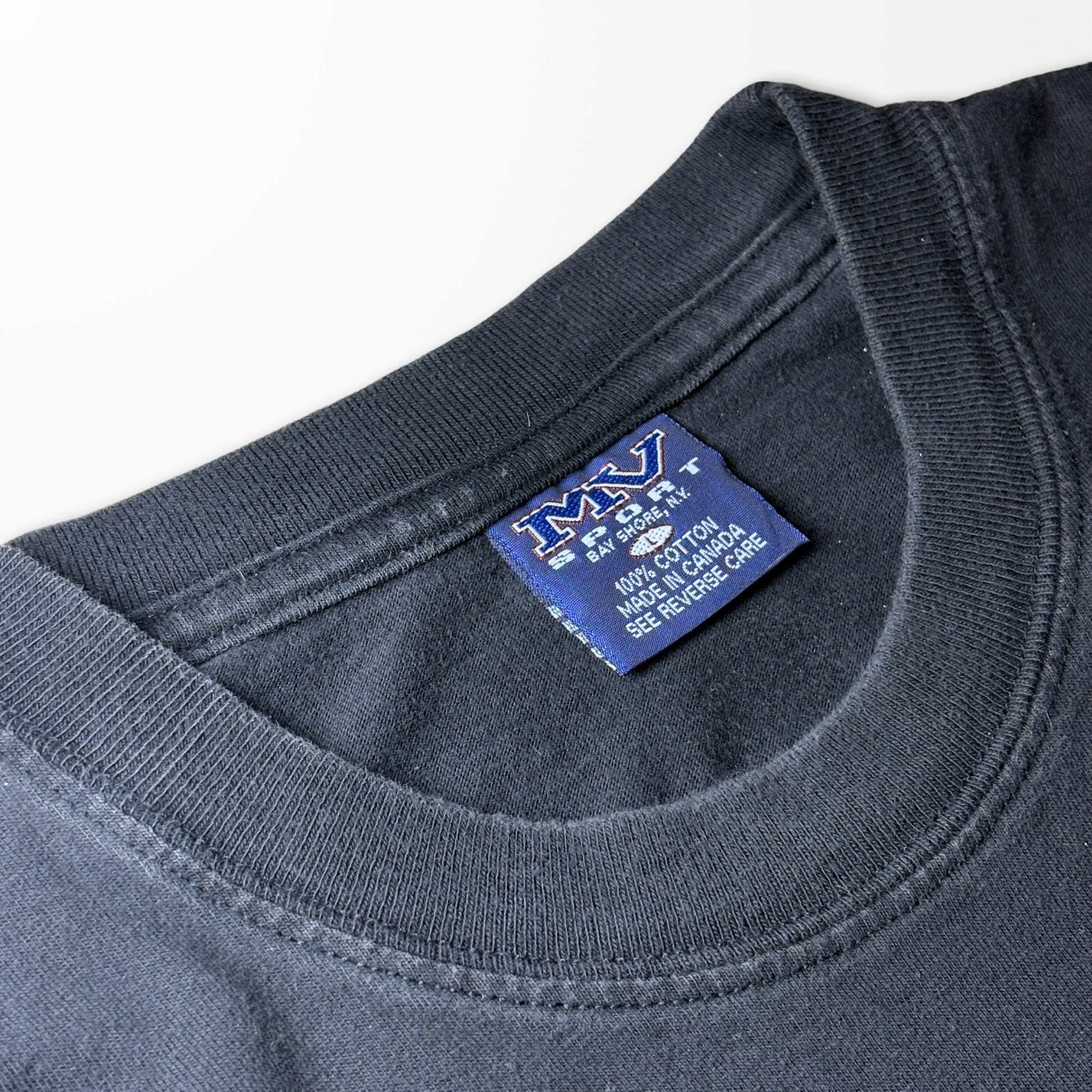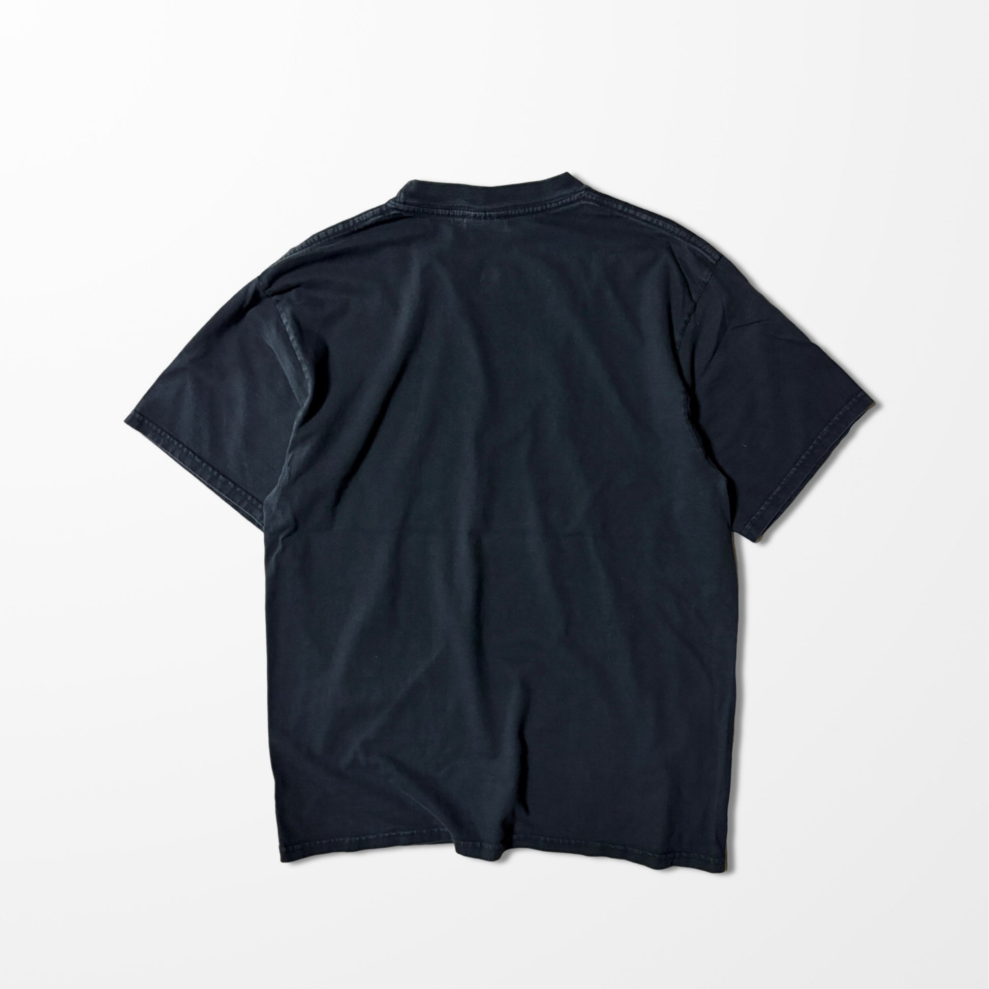ミニマルなグラフィックが絶妙なインパクトを放つブラックTシャツ。シェイクスピアの横顔と月が組み合わさったアートな一枚は、ちょっと気の利いた知的ムードを演出してくれます。肩の力を抜いたカジュアルな装いにも、モードなコーデにもハマる万能アイテム。洗いざらしのフェード感がヴィンテージ好きにはたまらない雰囲気です。