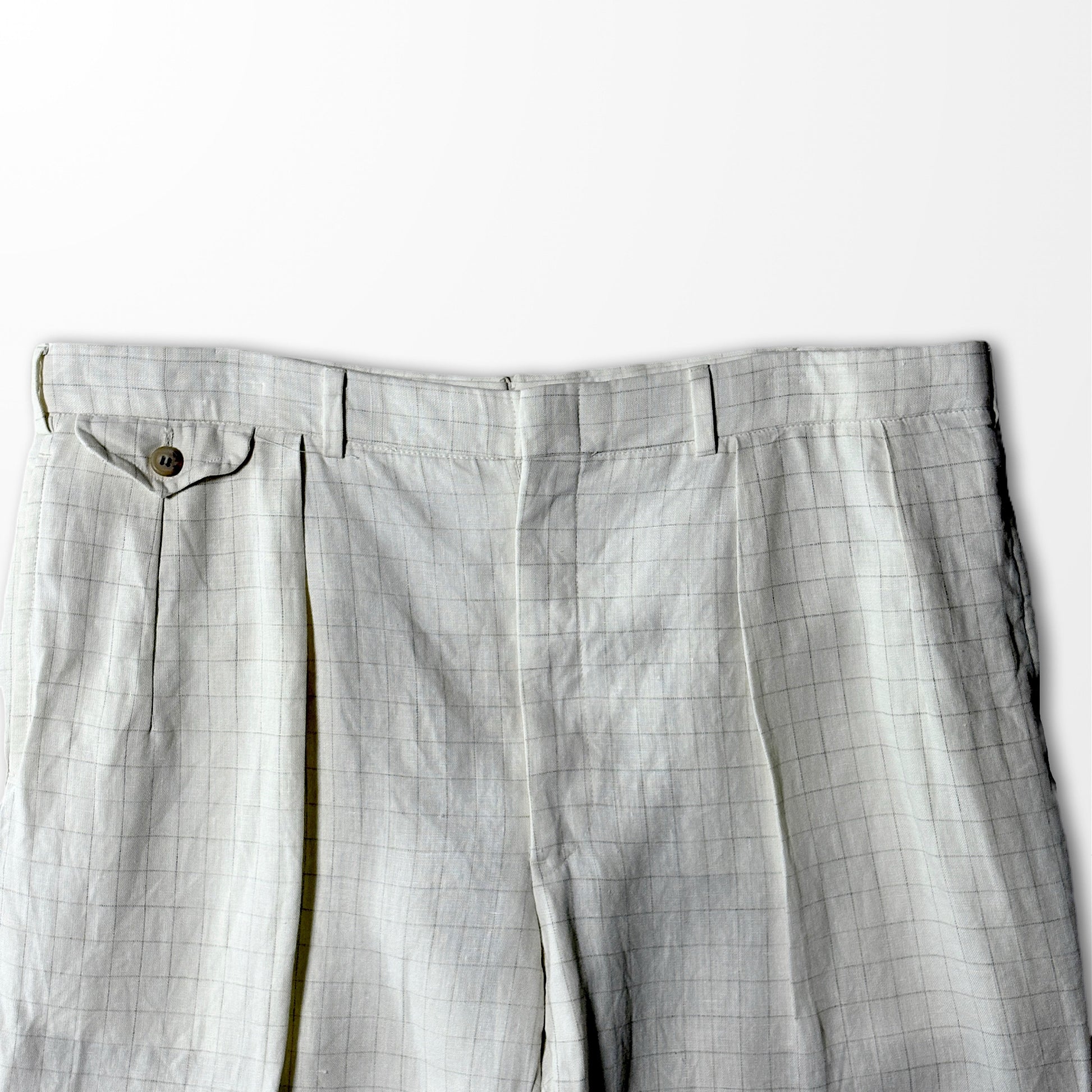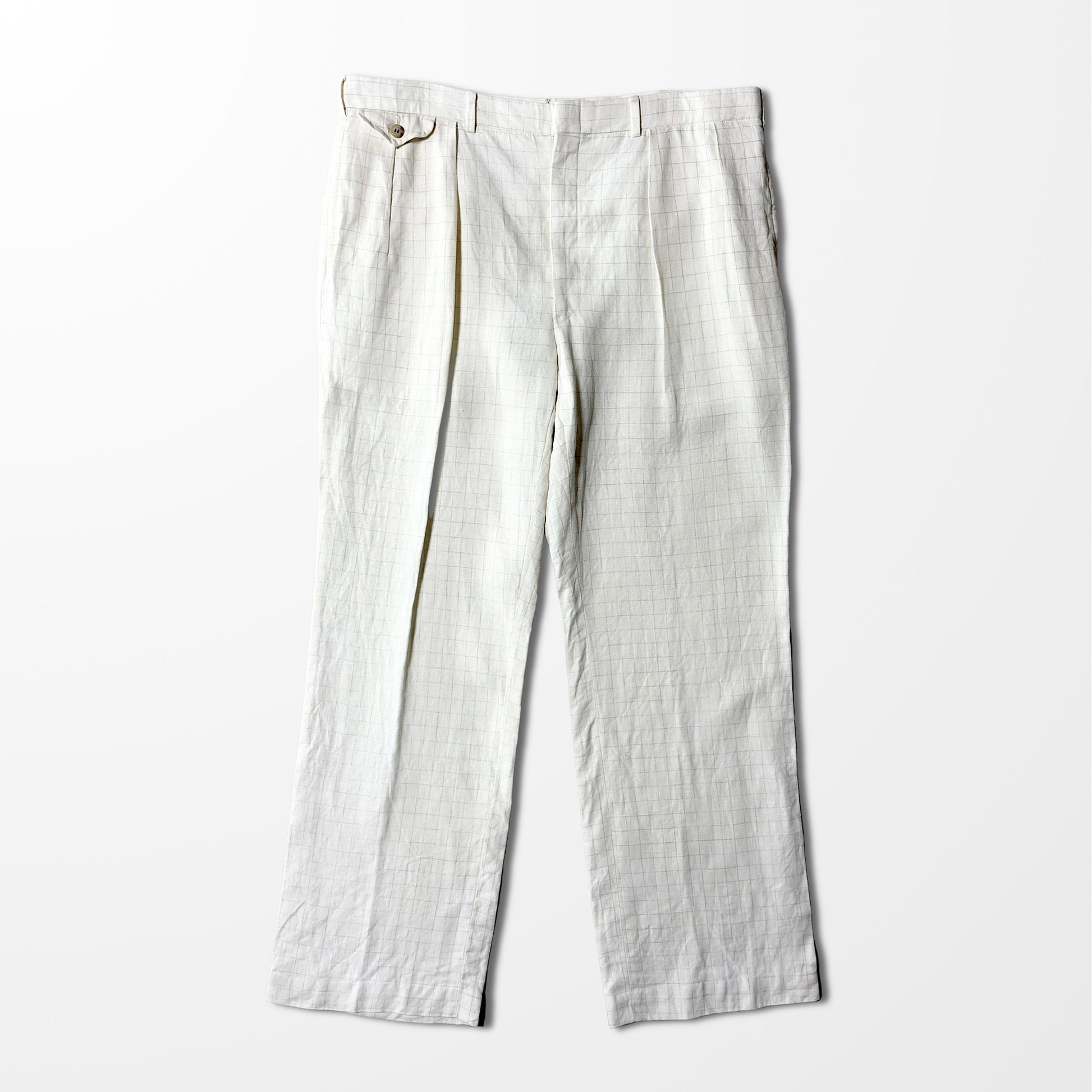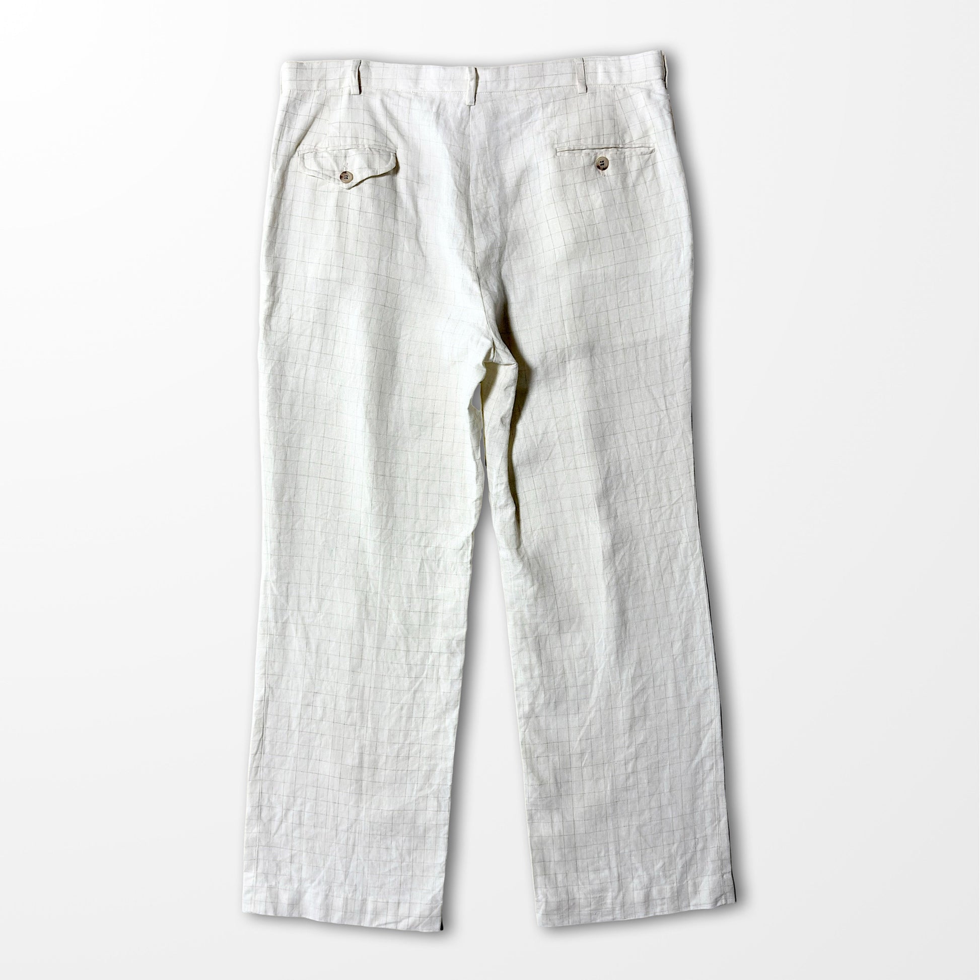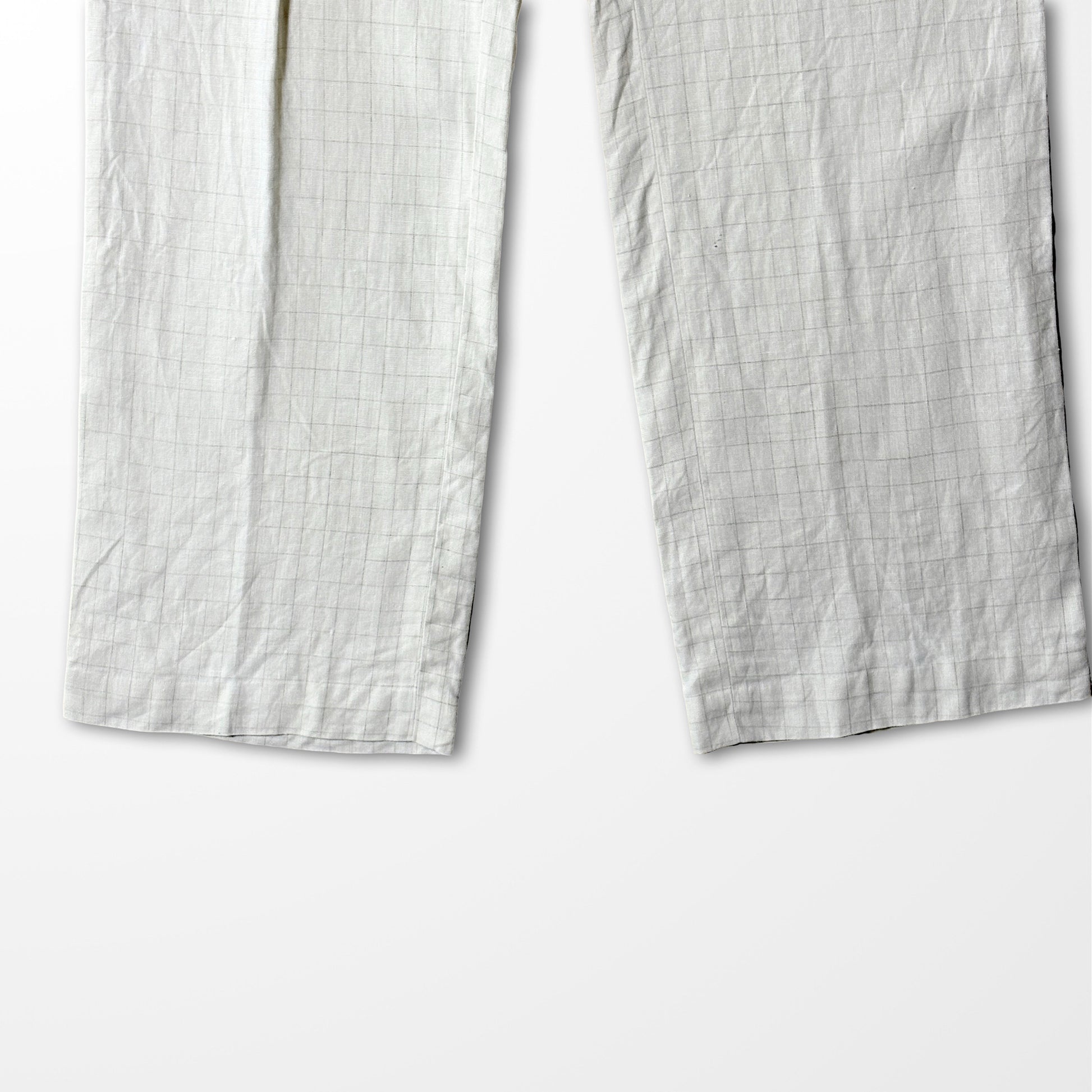 やわらかなアイボリーのリネンに、繊細なチェック柄が静かに浮かぶ、ポロラルフローレンのワイドパンツ。