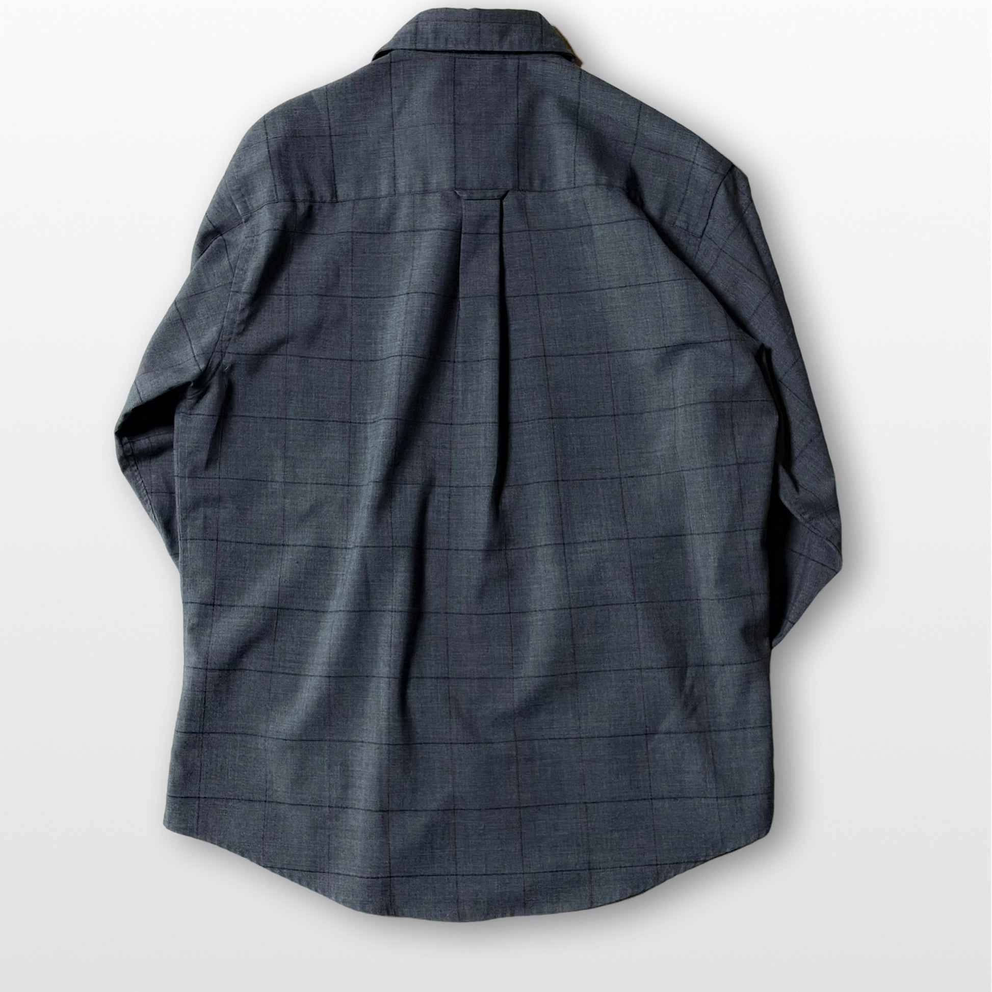 ウールならではの艶感とハリが漂うチャコールグレーのチェックシャツ。