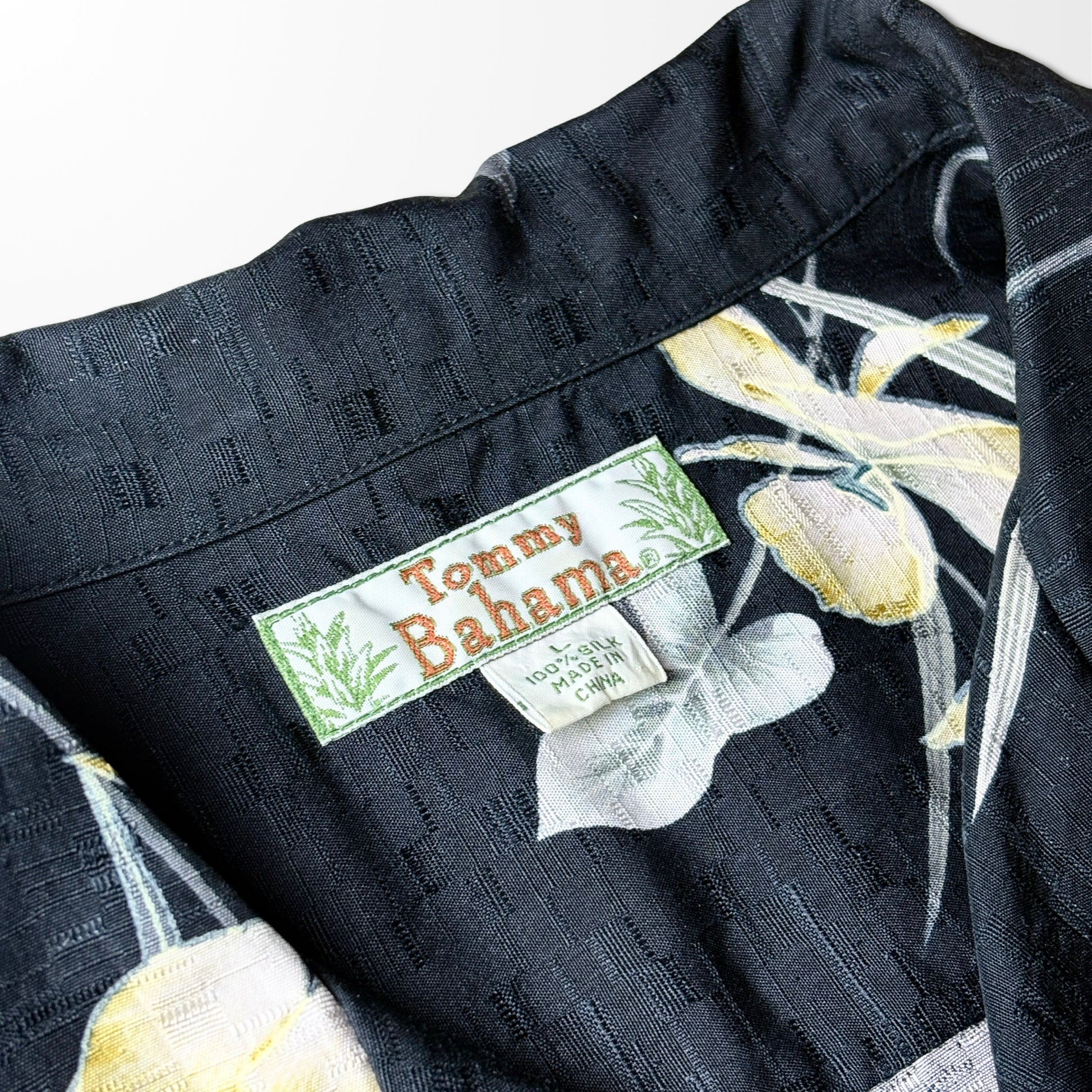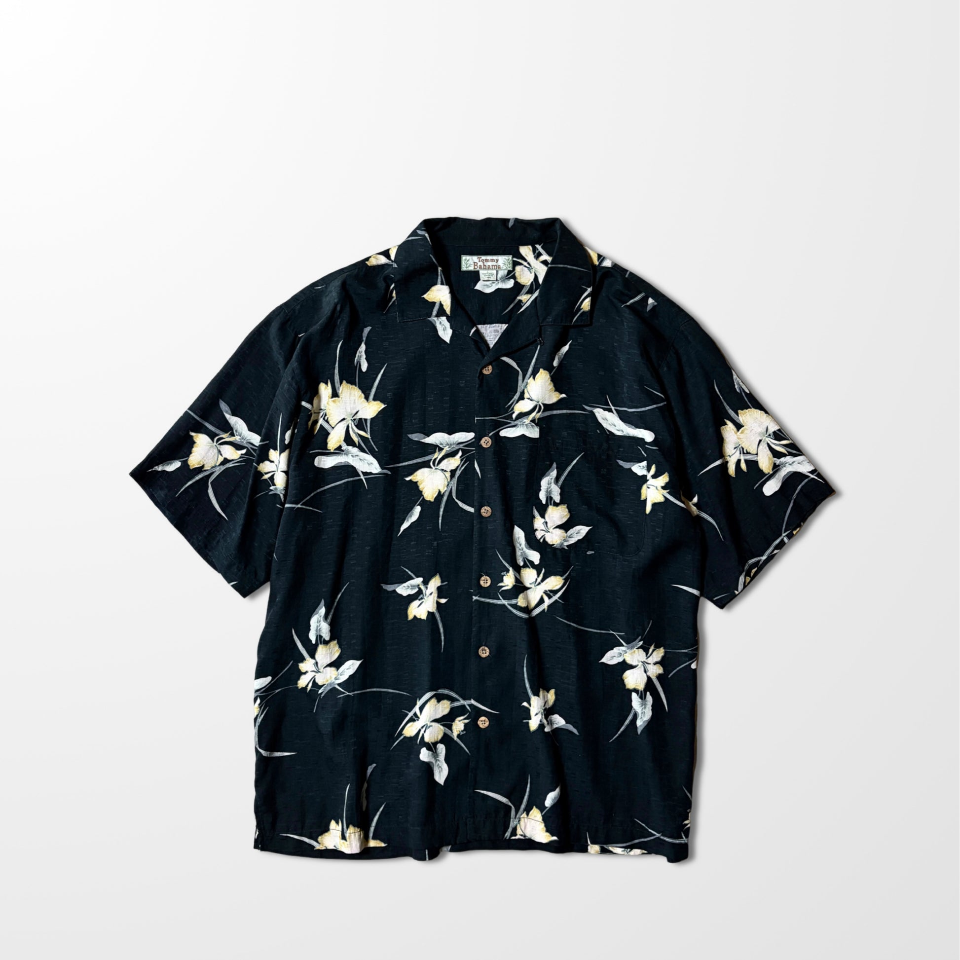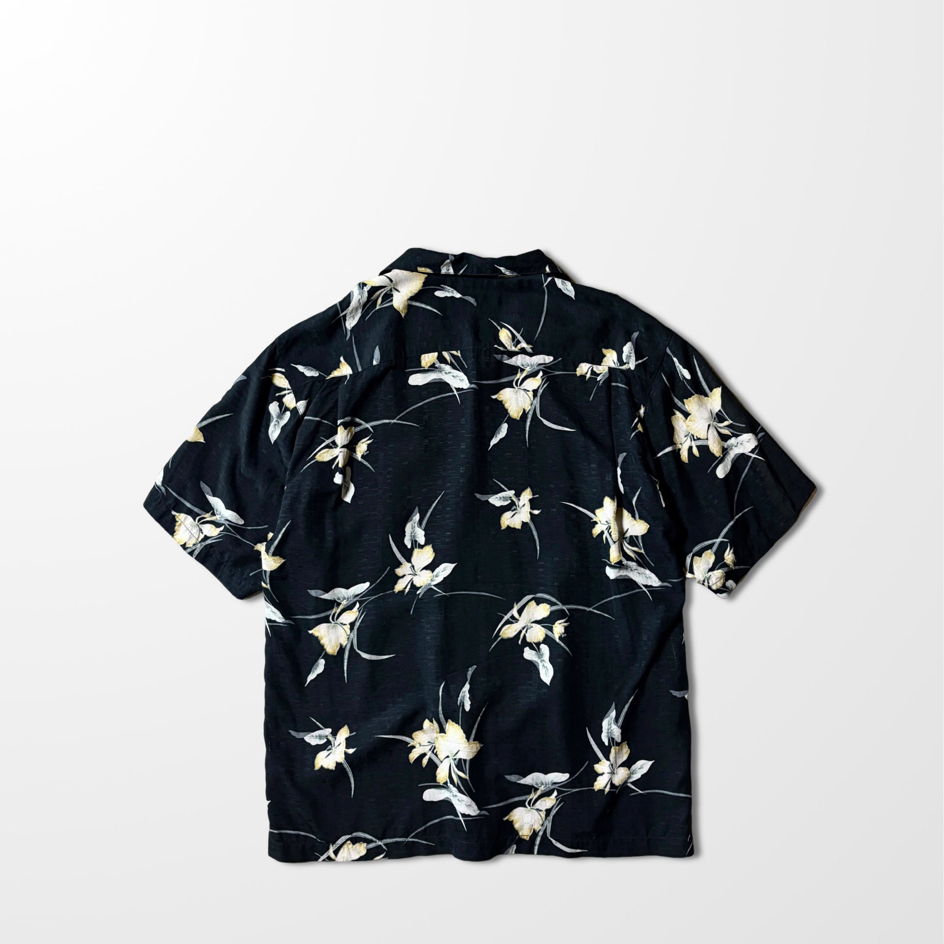 Vintage Black Floral Open Collar Shirt – Relaxed Fit,silk