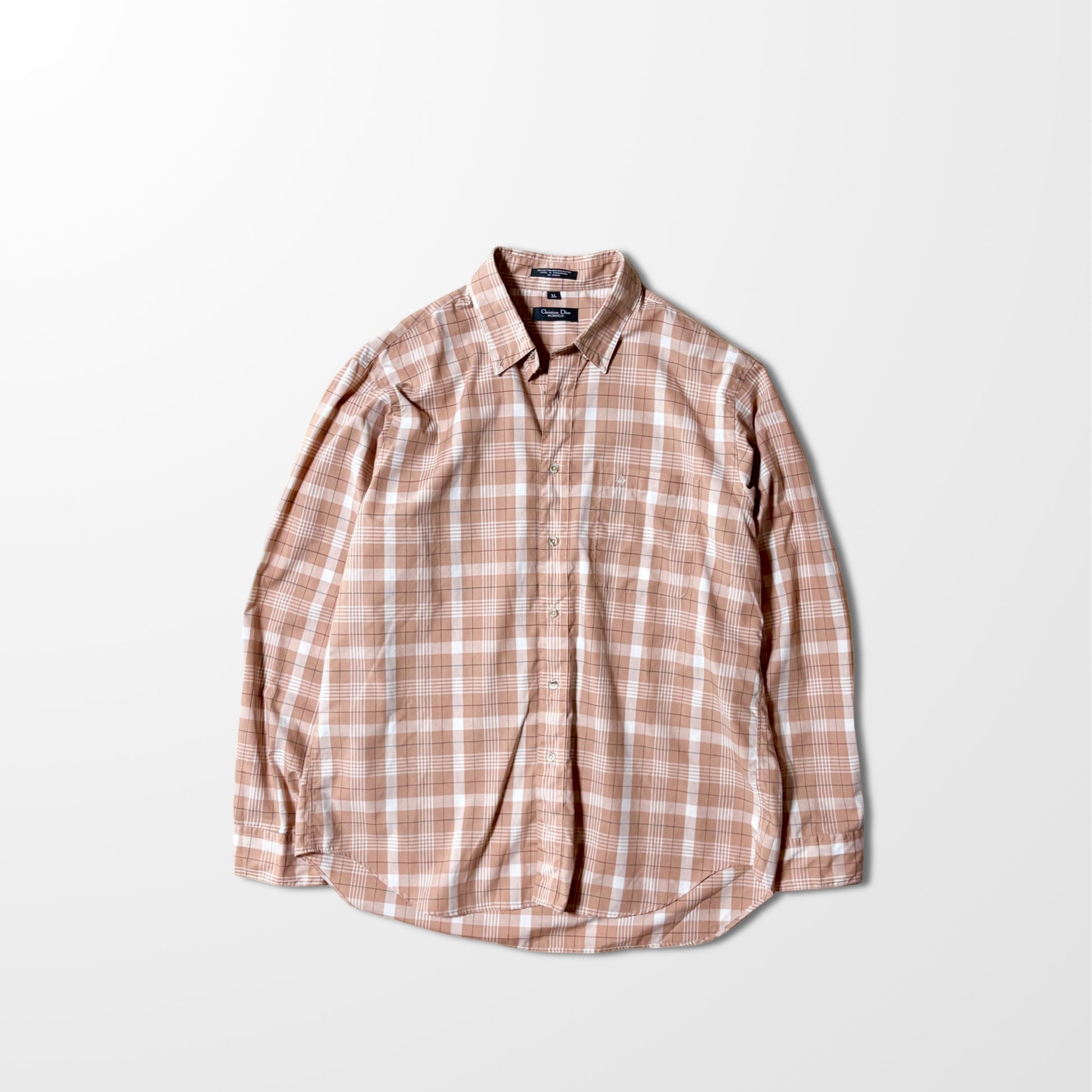 Christian Dior Gingham Check Shirt – Peach & White – Size XL – Vintage