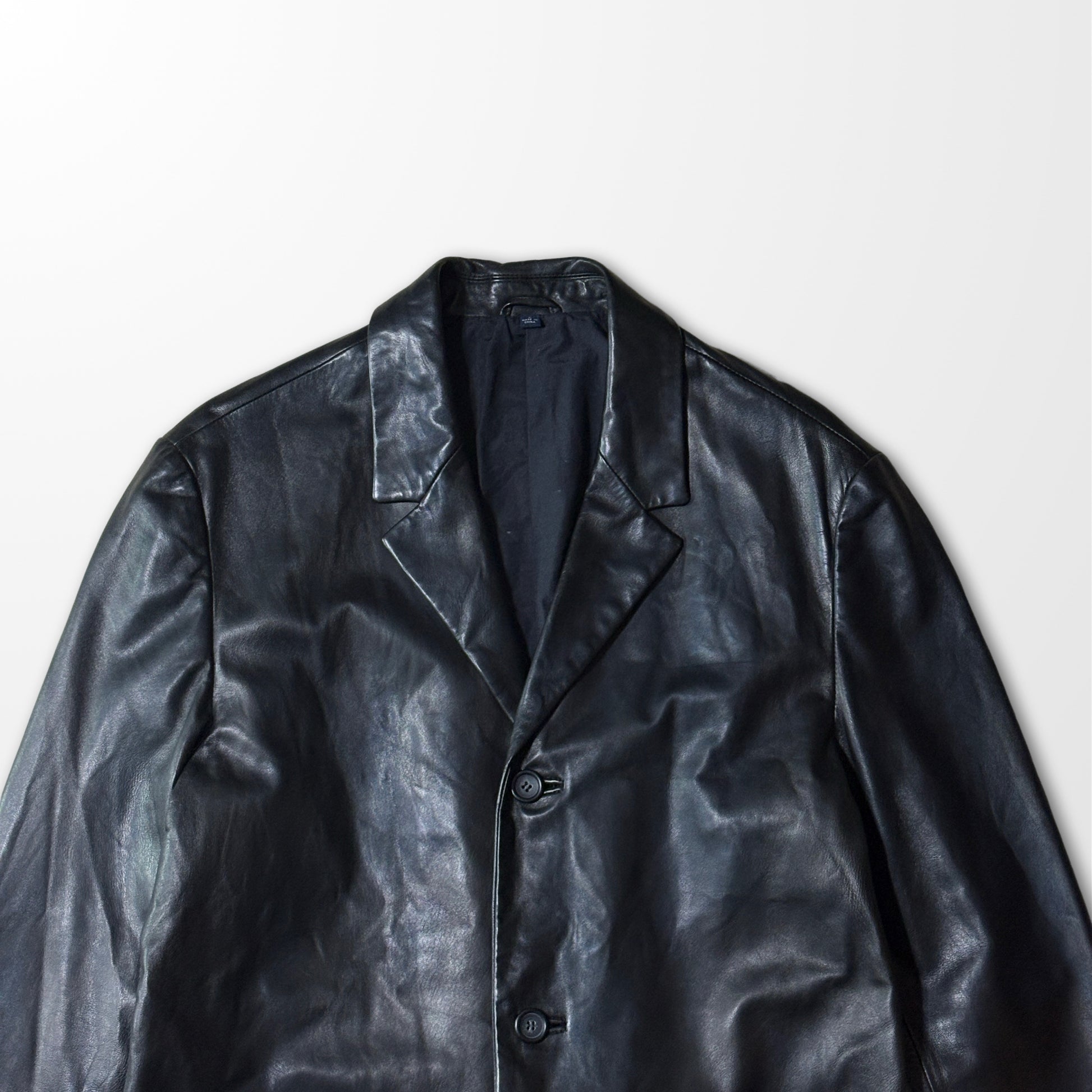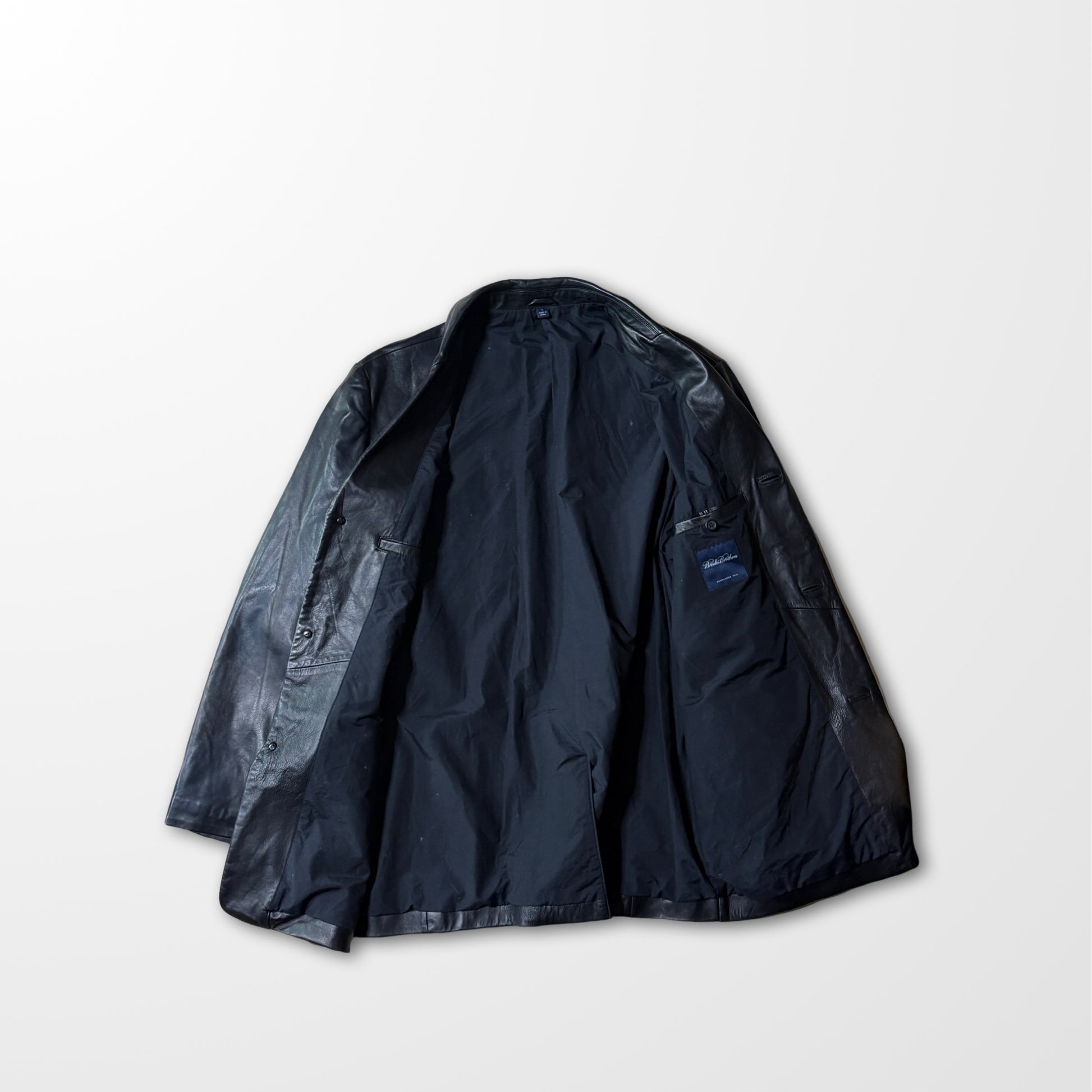 しっとりとした質感の本革を贅沢に使った、Brooks Brothersのレザーテーラードジャケット。 サイズはL表記。身幅に程よく余白がありつつ、肩から裾にかけて自然に落ちるすっきりとしたシルエットです。 ラペルの角度、フロントのフラップポケット、裏地付きの総裏仕立てなど、テーラードらしい端正なディテールも健在。 触れるとしなやかで、光の当たり方によって鈍い艶が浮かぶレザー。 ハリと柔らかさのバランスが良く、着込むほどに表情が深まっていく質感です。 無地ながらも退屈さはなく、静かに存在感を放つ一着。 【color】 ブラック