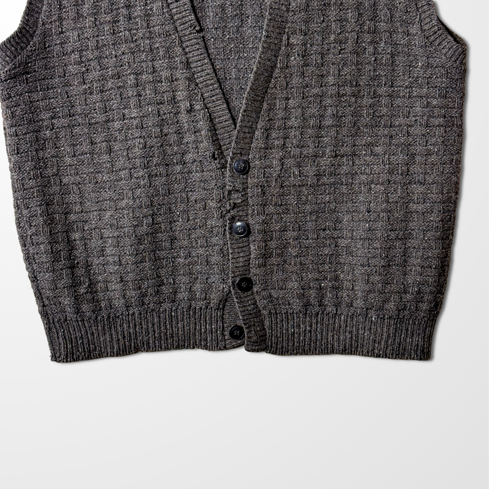 Wool Knit Button Vest – Brown – XL