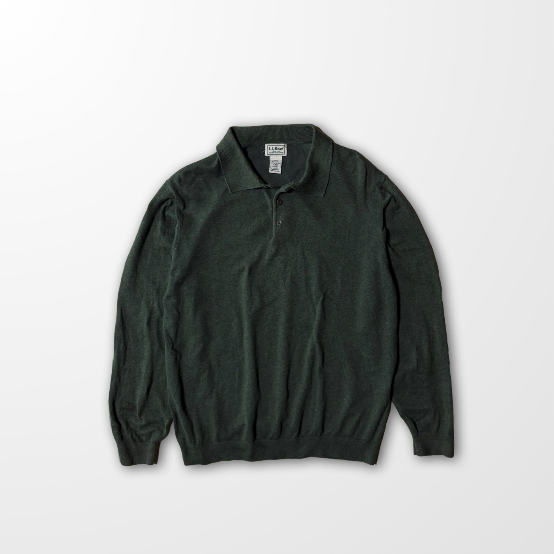 L.L.Bean Cotton Nylon Knit Polo Sweater Green – L